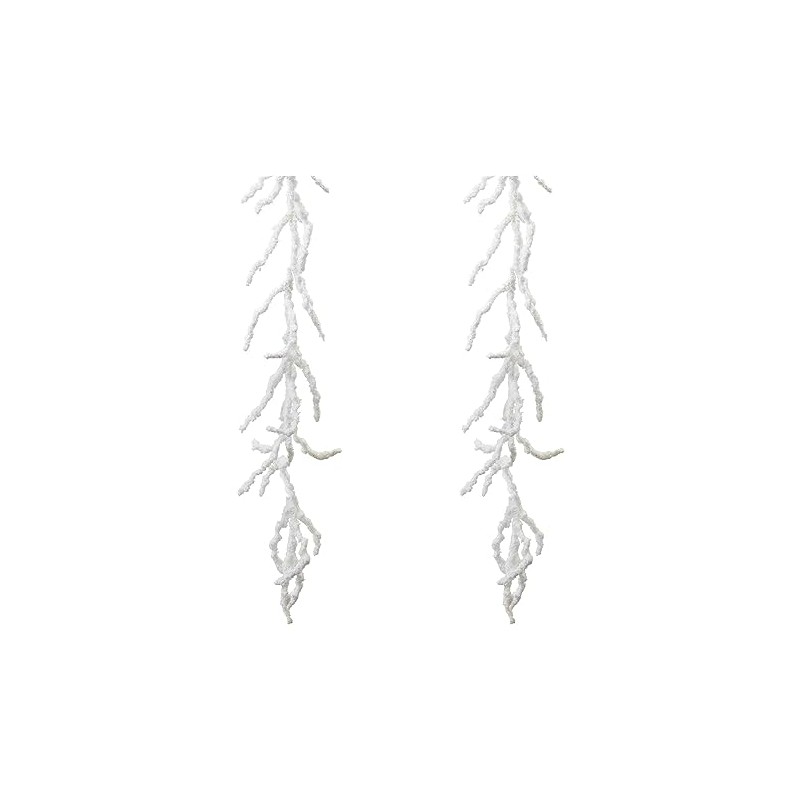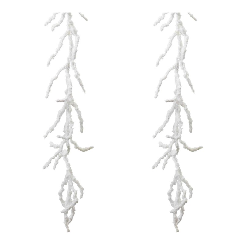 Elevate your holiday decor with these Christmas garlands. These enchanting garlands feature wintry white tones with a snowy flocked finish, bringing a touch of seasonal magic to your home. Whether adorning your Christmas tree, staircase banister, or woven into a pine wreath or garland, these lovely accents will add a festive flair to any space. Product Features:. Unlit. Christmas twig garland. Wintry white tones. Comes with flocked finish. Recommended for indoor use - if using outdoors place under a covered area Dimensions: 5' long x 9" wide. Material(s): plastic Note:Set includes 2 pieces of the item shown