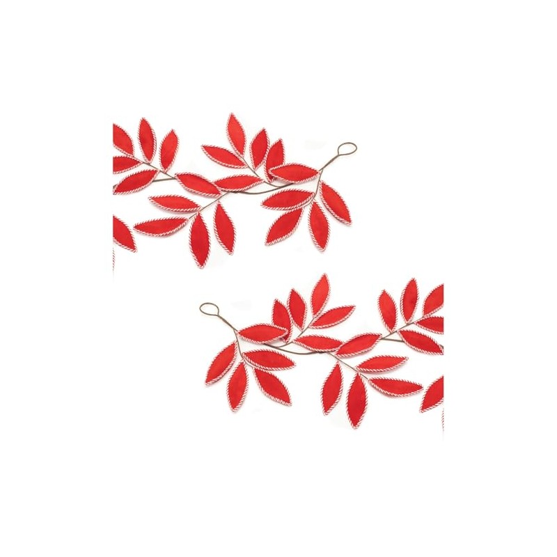 Melrose Striped Border Leaf Christmas Garlands - 4' - Set of 2