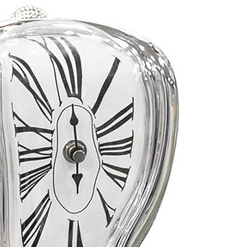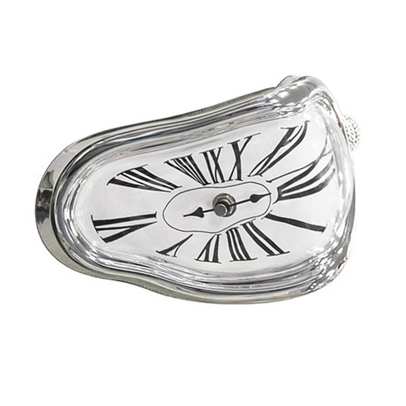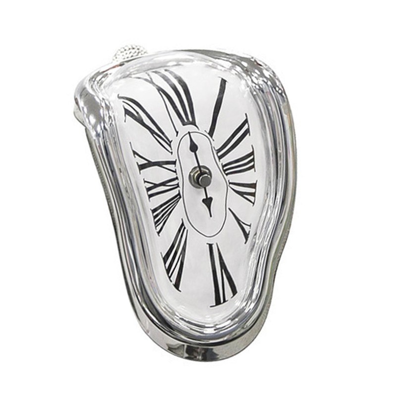 Melting Clock Plastic Retro Decorative Electroplated Metal Paint Desk Table Clock for Office Silver