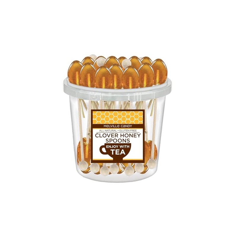 Melville Candy, Clover Honey Coffee Spoons Lollipop on Wooden Ball Sticks, Count of 30 Bucket