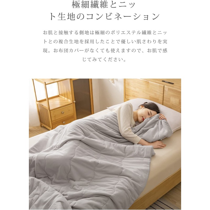 Melvint Comforter, 55.1 x 78.7 inches (140 x 200 cm), Skin Comforter, Fluffy, Single Quilt Blanket, Good Touch, Comforter, Moisture Wicking, Quick Drying, Soft Knit Fabric, Lightweight (Thin, Gray, 2.4 lbs (1.07 kg)