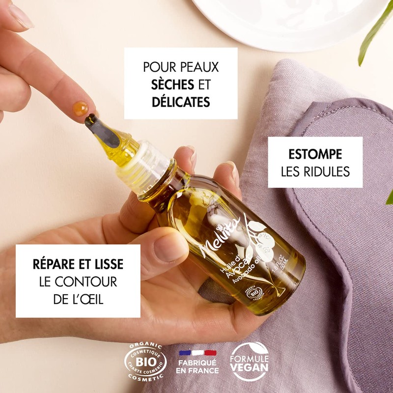 Melvita – Bio-Avocadoöl – Glättet die Augenkonturen – Mildert Falten – Reduziert Dehnungsstreifen – 100 % natürlich – Bio-zertifiziert – Vegan – Flasche 50 ml