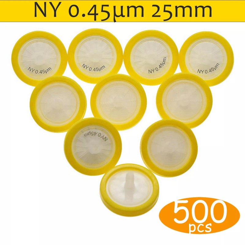 Membrane Solutions 500pcs Nylon NY Membrane LAB Syringe Filters 25mm 0.45μm Non-Sterile Hydrophilic