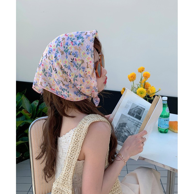 [MEMECLE] Floral retro scarf Pink 9
