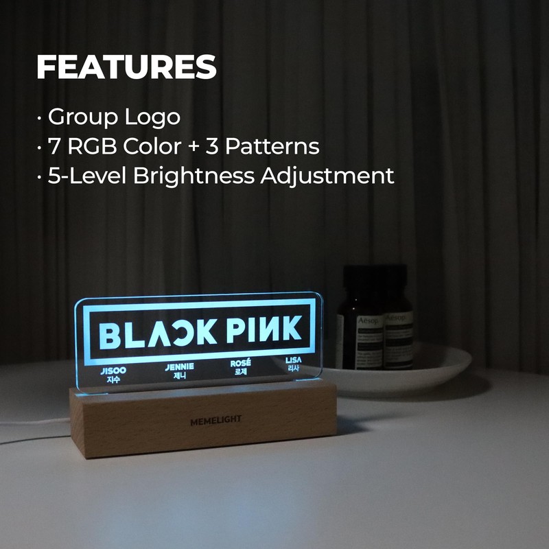 MEMELIGHT Black.Pink Merchandise, Kpop Lamp for Blink, 7RGB Color, Dimmer, 8.3 x 4.2 x 1.7
