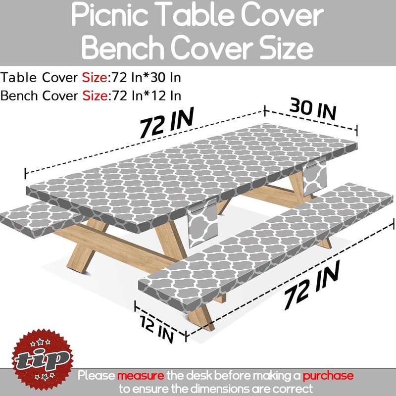• 【3 Piece Picnic Tablecloth Set】You will receive a 72*30 inch picnic table cover and two 72*12 inch bench covers. In addition, we provide a portable handbag for you to carry this picnic table cloth, greatly facilitating your travel. If you have any questions about this product, please contact us promptly.