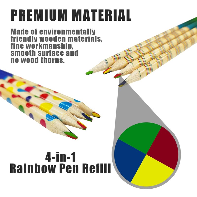• 【4-in-1 Colour】This pencil is a 4-in-1 rainbow colour. You can use a pencil to display different beautiful colours by rotating the pen tip to create colourful paintings, which is very wonderful.