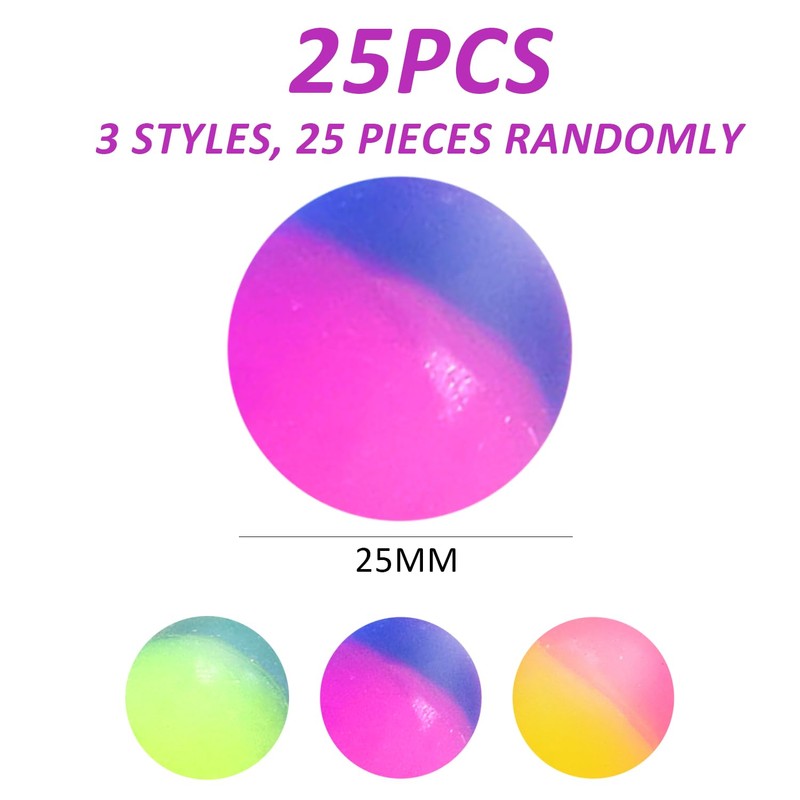 - Packaging information: You will receive 25 pieces of colourful 25 mm bouncy balls, available in 3 designs, which are sent at random and in sufficient quantity to meet your different needs.
