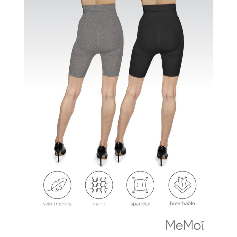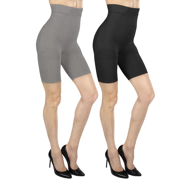 MeMoi 2 Pair High-Waist Shapewear Shorts, Smooth Thigh Shaper Shorts, Comfortable Womens Shapewear - Sizes S-4X, Gray Heather-Black, XL