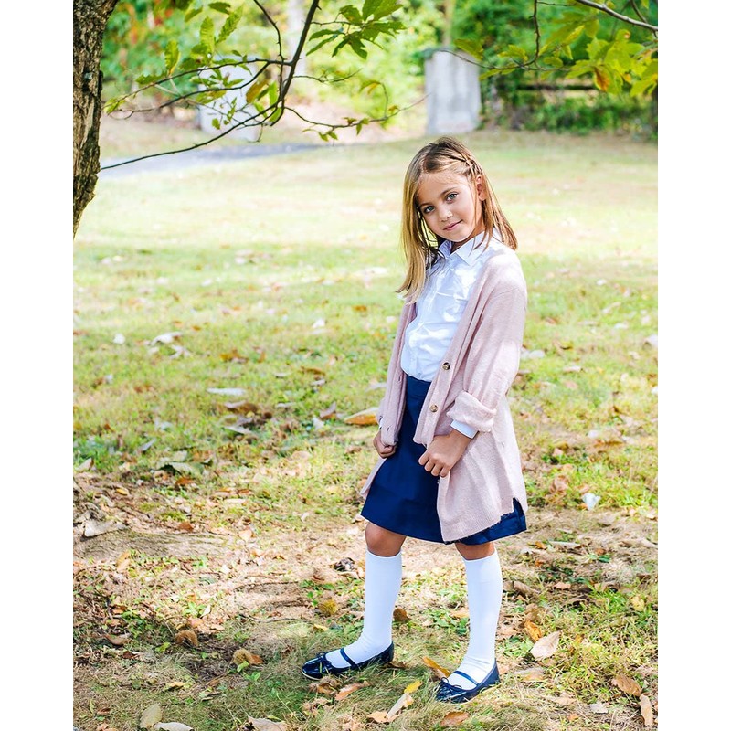 MeMoi - Calcetines para la escuela en la rodilla con calcetines altos para niñas, Navy Sp 1019, 7-8