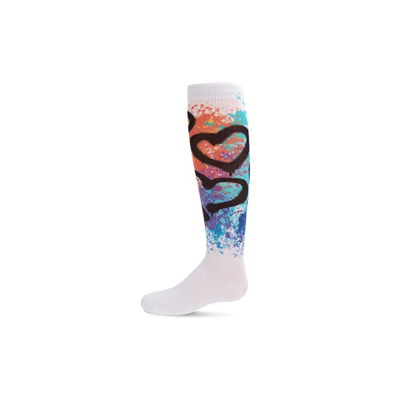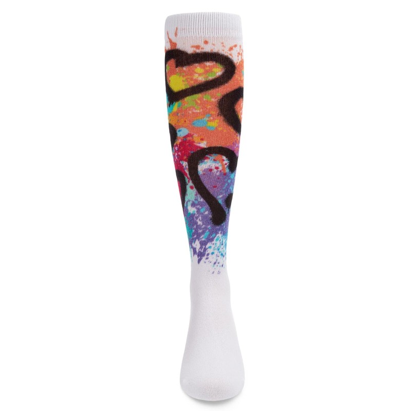 MeMoi Graffiti Heart Girls Cotton Blend Knee High Socks White 4