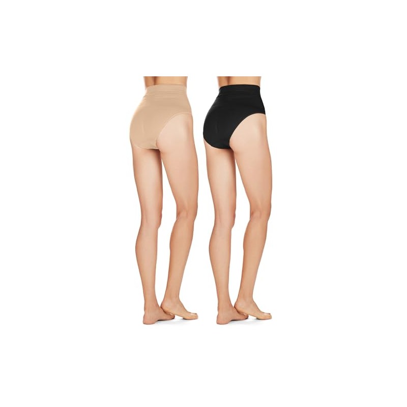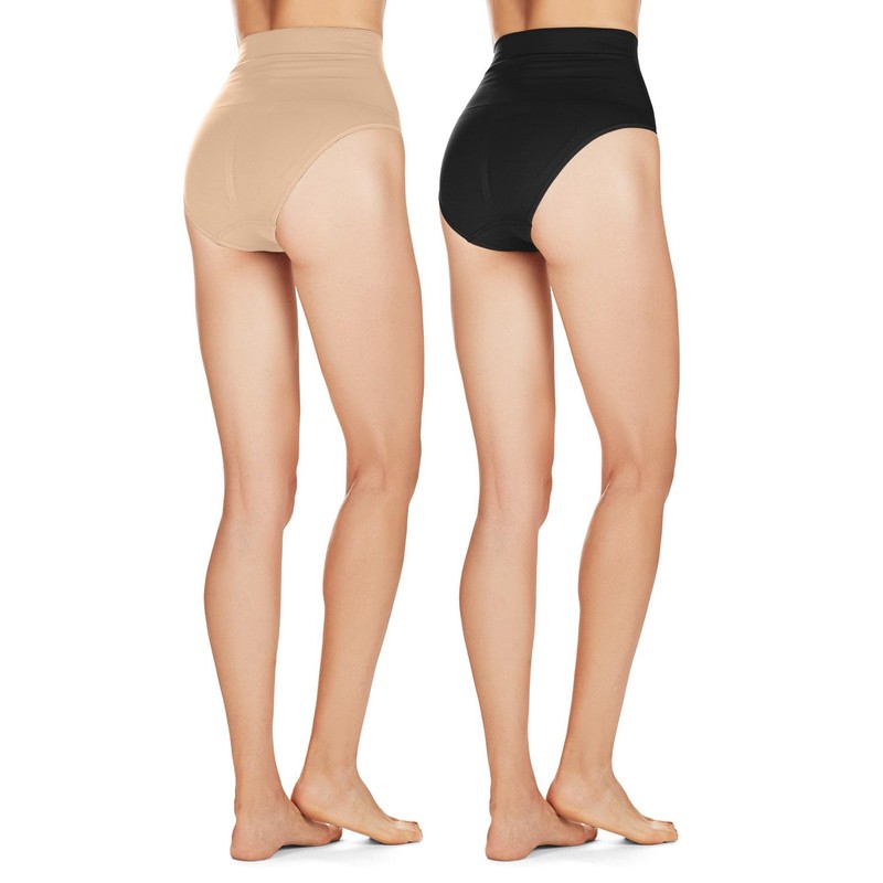 MeMoi Women's Bodysmoothers 2 Pair Pack High-Waist Sculpting Brief Nude-Black L