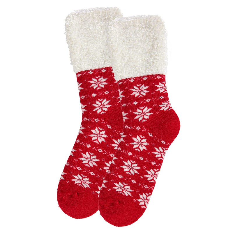 MeMoi Women's Snowflake Fair Isle Plush Cabin Socks Tango Red 9-11
