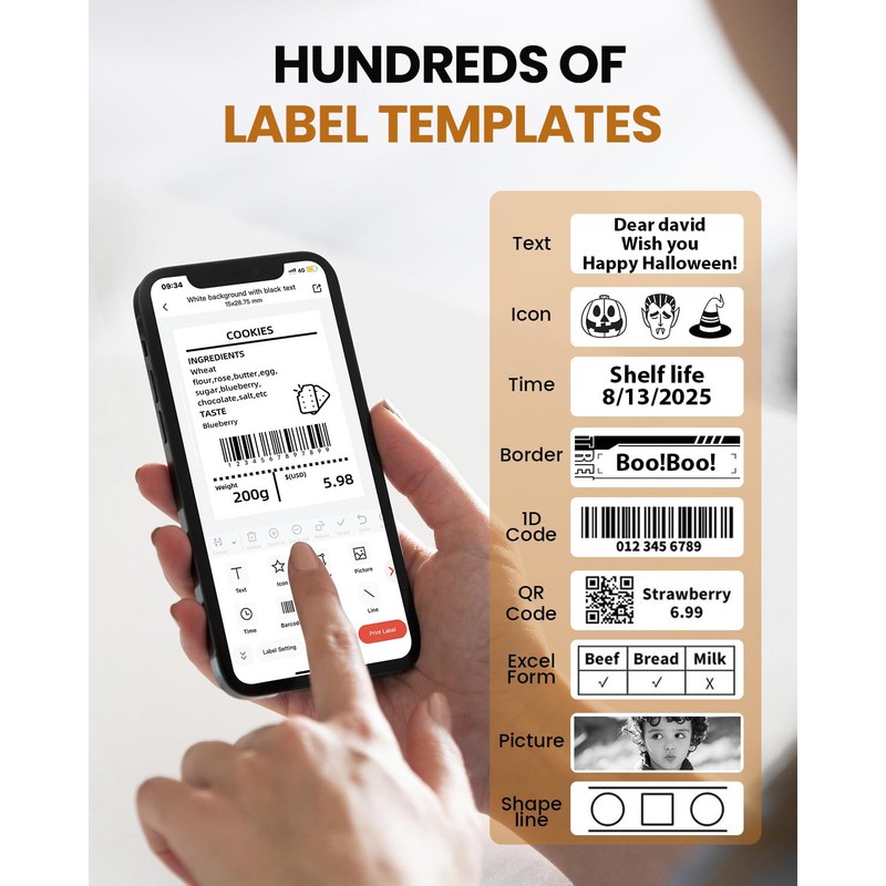 - Powerful and Easy to Use App: Memoking sticker maker machine works with our app "Print Master".100+ free label templates in 13 languages to print text, barcodes, icons, pictures, stickers and forms. Free to edit your own labels. One-click batch printing to make your business more efficient Tip: For more beautiful label templates, you may need to pay for them