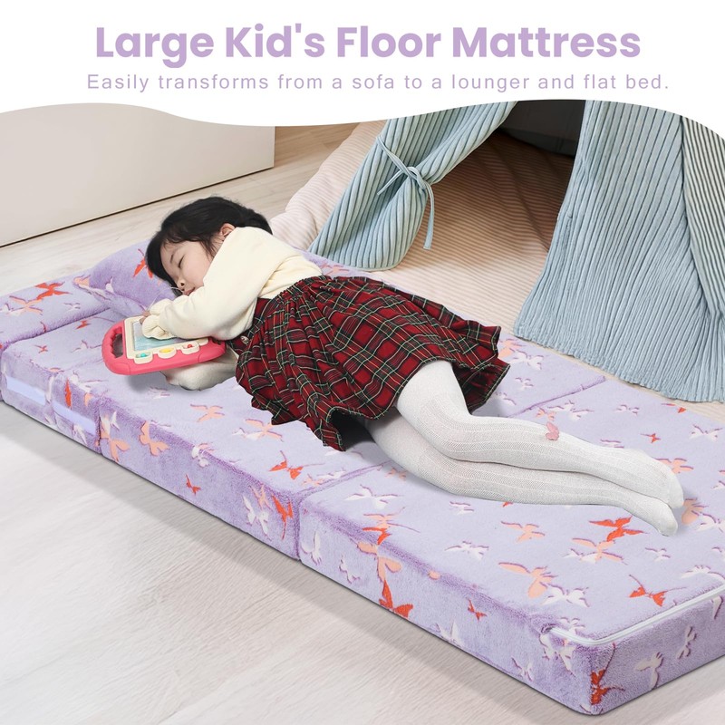 - Glow in The Dark: The folding chair bed is made of glowing plush material, just expose the trifold kids mattress to bright light sources, then take it to the dark room to see the glowing butterfly, add a warm and sweet charm to the kid's room