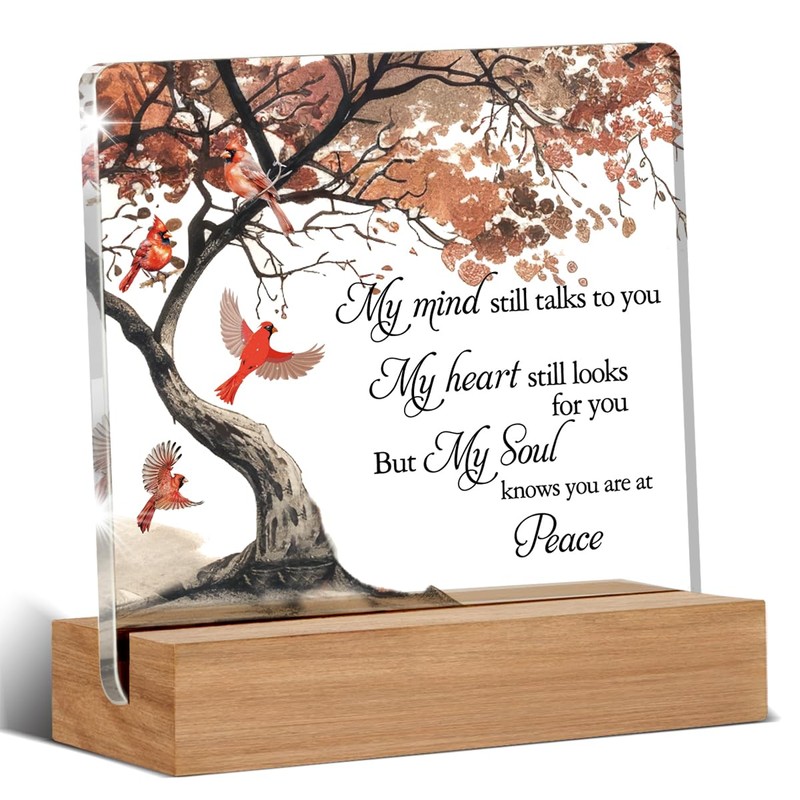 Memorial Christmas Gifts for Loss of Loved One, Cardinal Christmas Gifts, Remembrance Christmas Home Decor Desk Signs Plaques 4 × 4 Inches Acrylic