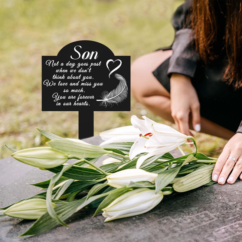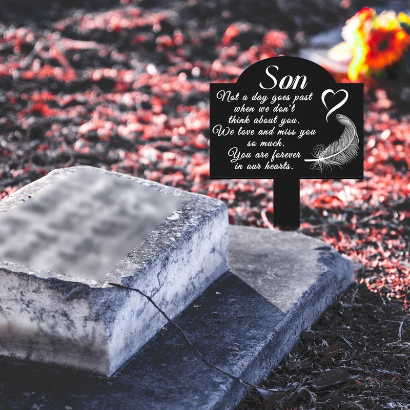 - Freestanding Memorial Gift: A dignified stake marker that stands securely, perfect as a thoughtful sympathy gift or personal tribute to cherish a son's memory.