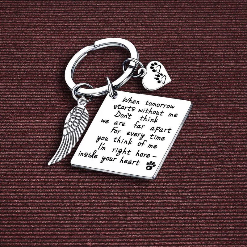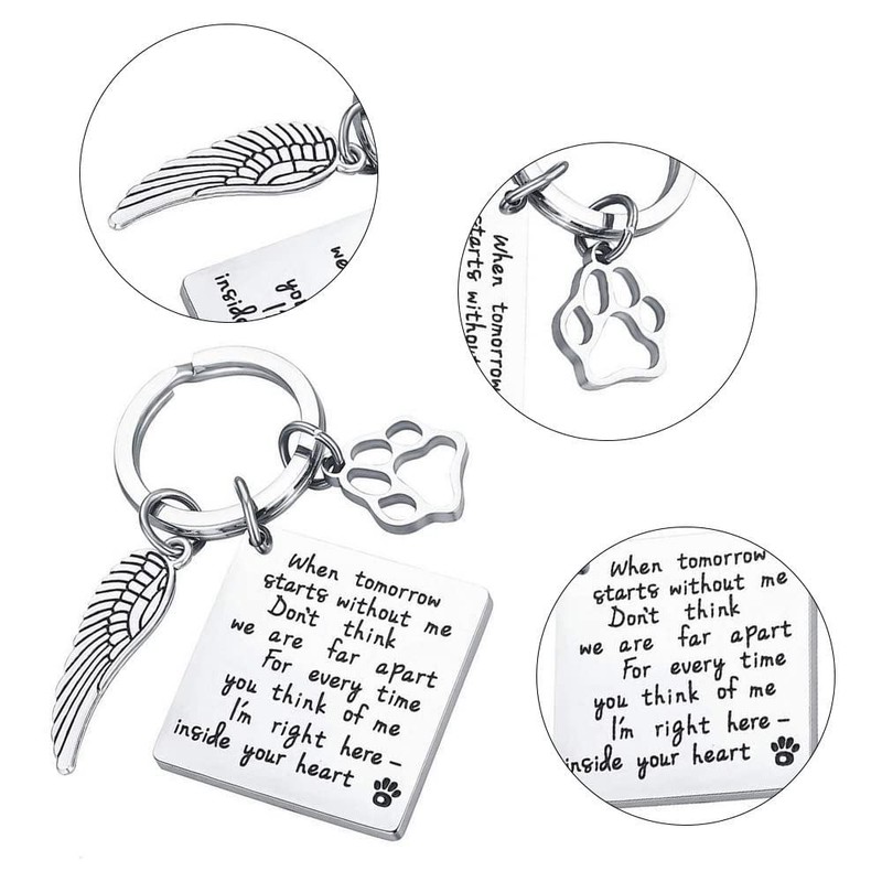 - Styles of pet keychains: the words on the keyring symbolise your eternal love for your pets. Attach the loss of pet keyrings to your backpack, carry them around and appreciate the happy memory between you and your pet