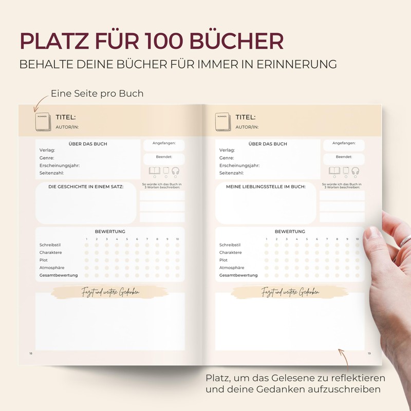 • Your personal book archive: Our book journal is the perfect companion for all bookworms who want to document their reading adventures clearly and capture them forever.