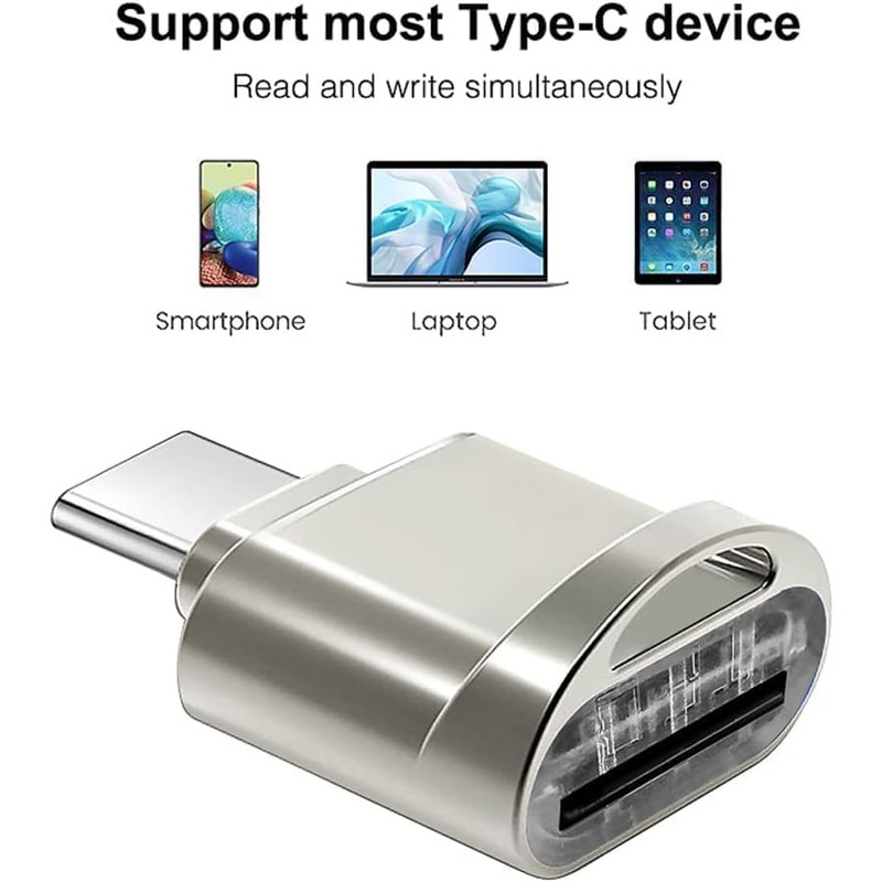 - This usb c micro SD card reader has a zinc alloy metal case, which is beautiful and durable. Plug and play, no need to install drivers. Mini size, compact and portable, and comes with a key chain. The built-in blue indicator light makes it easy for you to check the working status of the device.