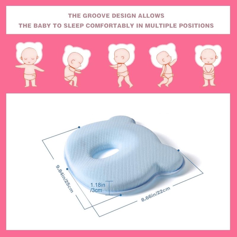 Yevclihds Memory Foam Baby Pillow,Cute Cartoon Bear Soft and Cozy Pillow, Breathable Bedding Set for Infants for Small Boys and Girls Prevent Flat Head