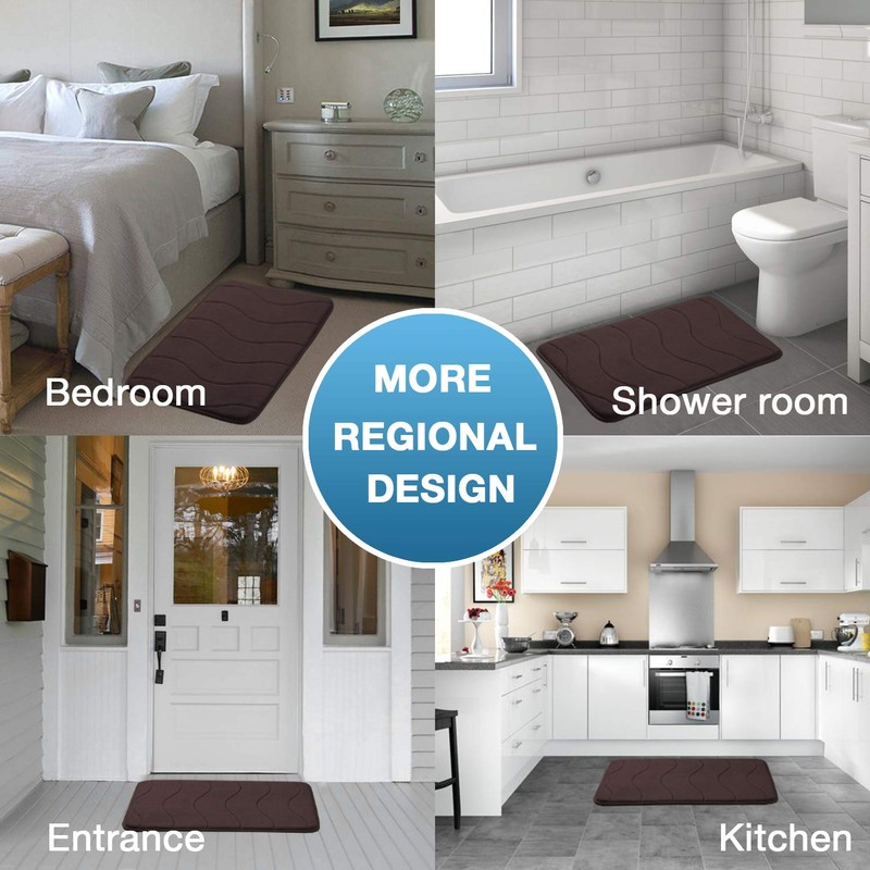 - FOOT MASSAGE: These bath mat rug set is crafted from ultra soft coral fleece, fill into innovated memory foam. Backed with non slip rubber bottom, strong and durable. Put your feet out of the shower on these bath runner to give your feet the warm, comfortable home SPA feeling
