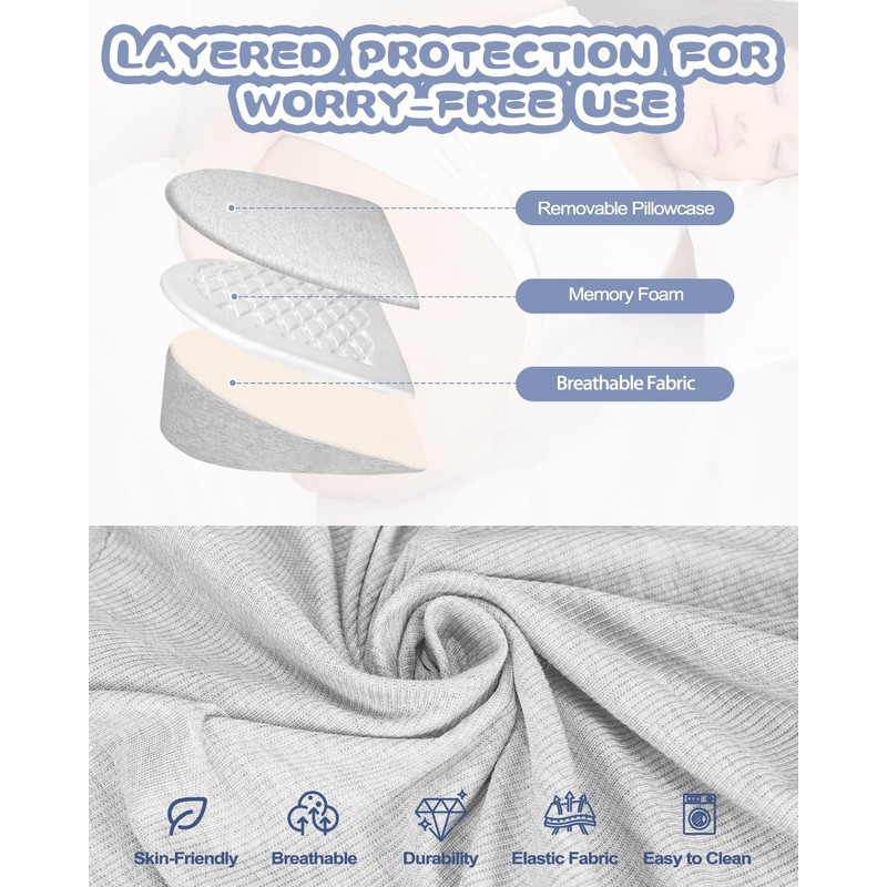 Memory Foam Pregnancy Pillow, Maternity Pillow for Side Sleeper, Plus Size Pregnancy Wedge, Pregnant Women Support for Back, Belly, HIPS, Removable Cover