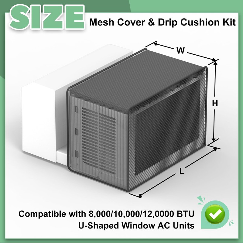 - Design for U-Shaped Window AC: Mesh cover and drip cushion kit is snug fit for U-shaped window air conditioner outside units. Widely compatible with 8,000/10,000/12,000 BTU u-shaped window air conditioner.