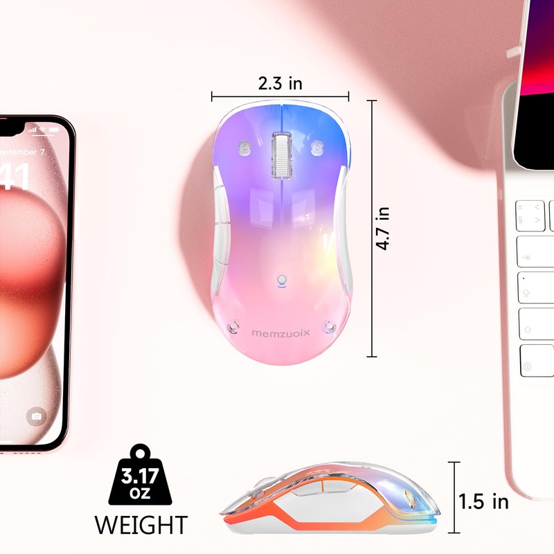 memzuoix LED Wireless Mouse offers RGB 7-color breathing LED lights and ergonomic magnetic cover, cord-free convenience and comfort. This special Wireless Mouse comes with stable 2.4GHz wireless transmission technology, which not only provides powerful and reliable connection up to 43.0ft distance, but also ensures longer working via 500mAh built-in battery. memzuoix cordless mouse with nano receiver works for laptop, desktop, computer and netbook PC.