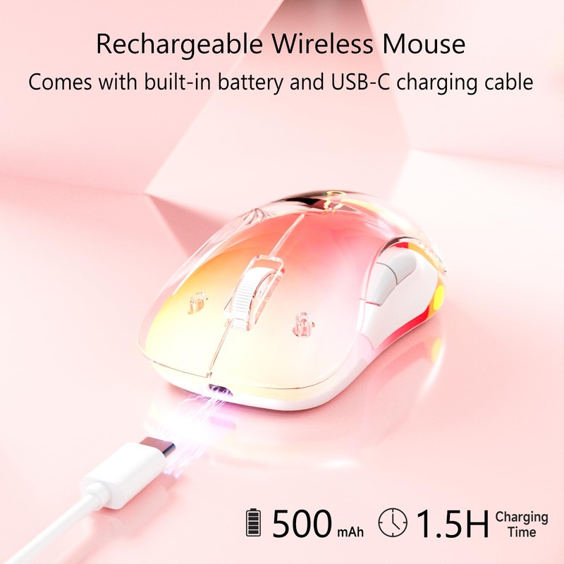 memzuoix 2.4G Wireless Mouse with Customizable Cover & 9-Color LED - Rechargeable Ergonomic, 1200 DPI, 5 Buttons, USB Receiver for PC/Mac - Pink