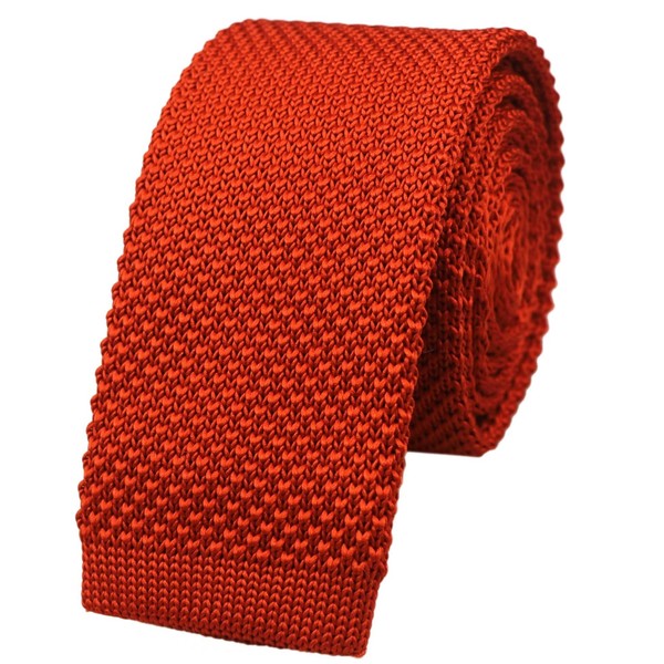 Men Deep Orange Retro Ties Narrow Rust Autumn Stylish Textured Neckties For Groomsmen