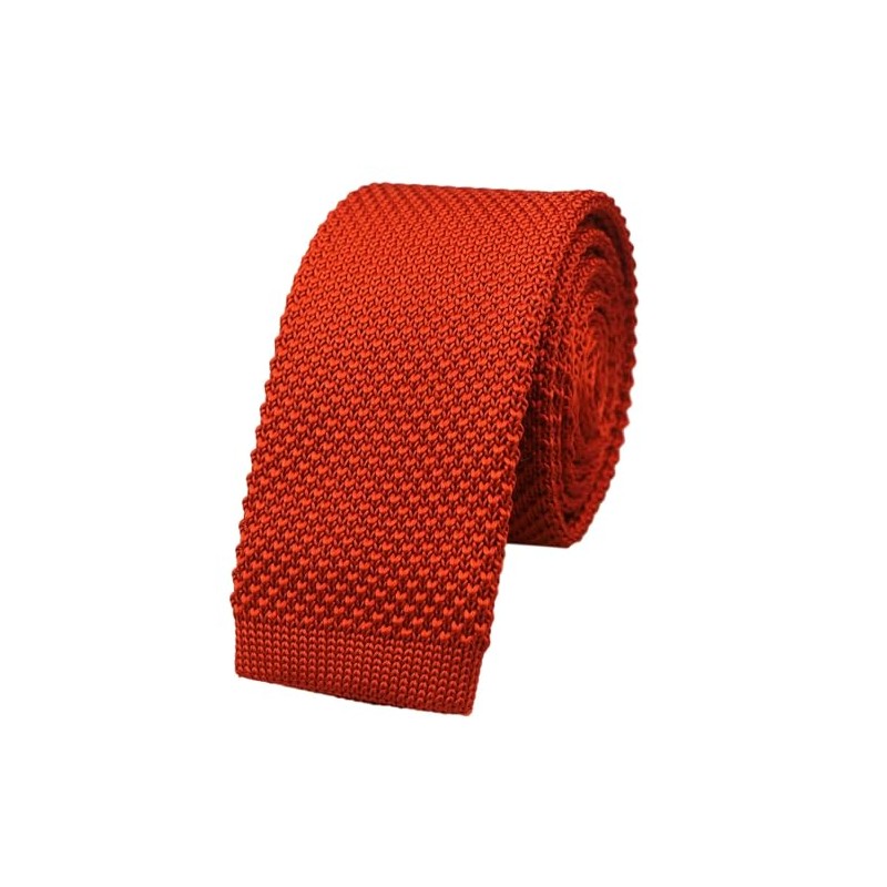 - The Skinny Knit Tie in Solid Color Orange has all the qualities of an exceptionally fashionable accessory. Firstly, the obvious skinny width is a key choice for making an understated casual statement.