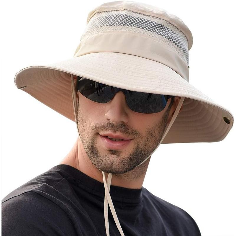 Men Fishing Sun Boonie Hat Wide Brim Outdoor Summer UV Protection Sun Hat - Color: Beige