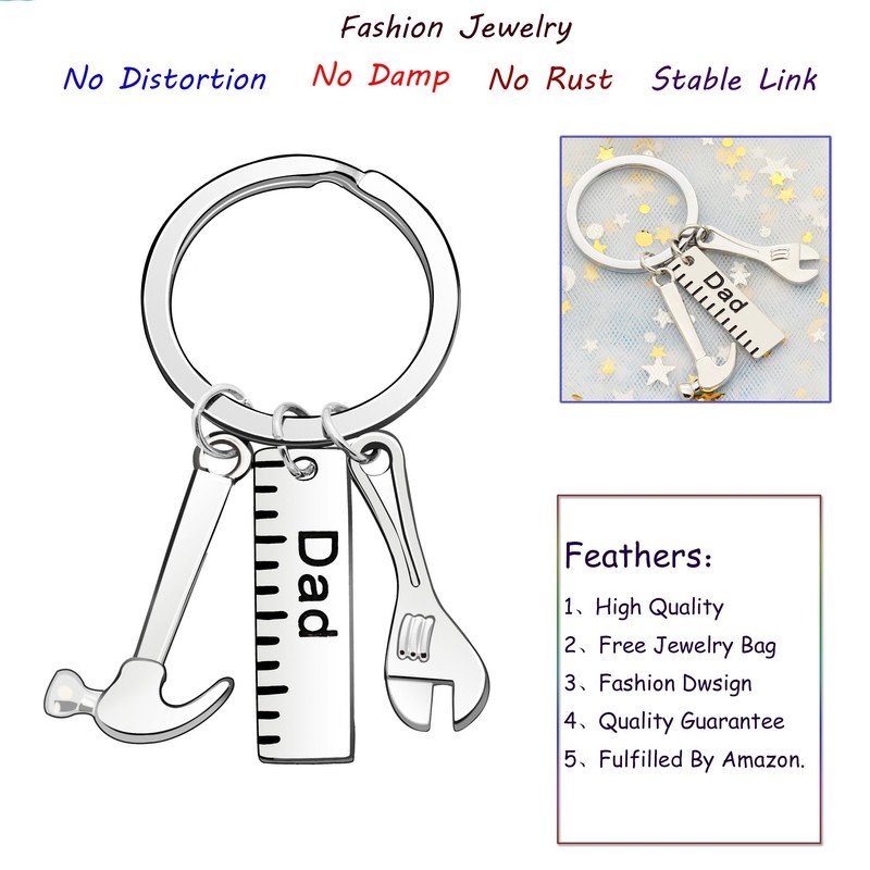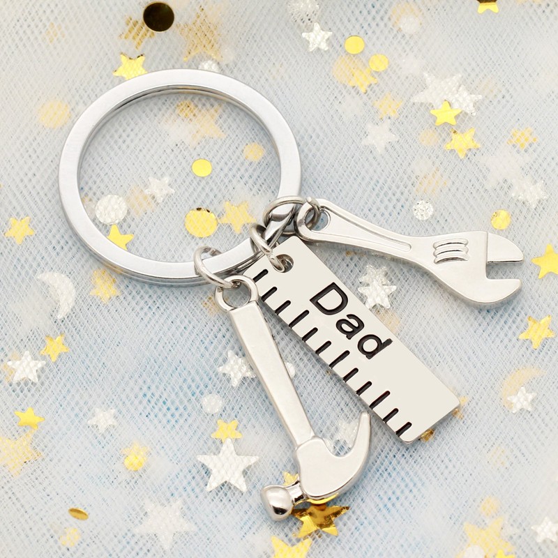 Men Gift 3D Ruler Wrench Hammer Pendant Key Chain Ring Multi Tool Charms Fathers Day Dad Gift for Family