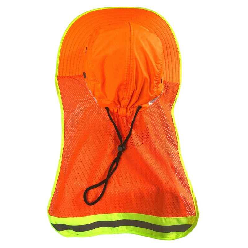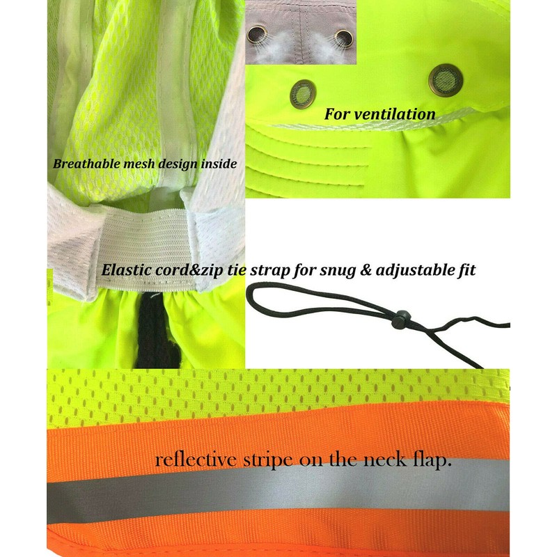 Men High Visibility Reflective Sun Hat with Neck Flap Wide Brim Boonie Hat Bucket Cap (1pc Neon Orange #B)