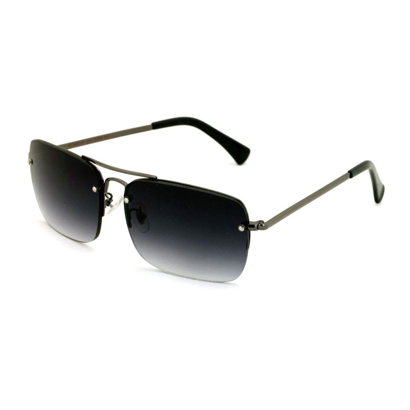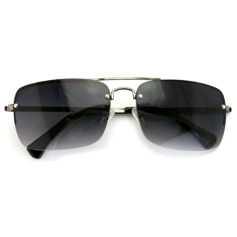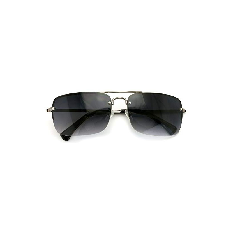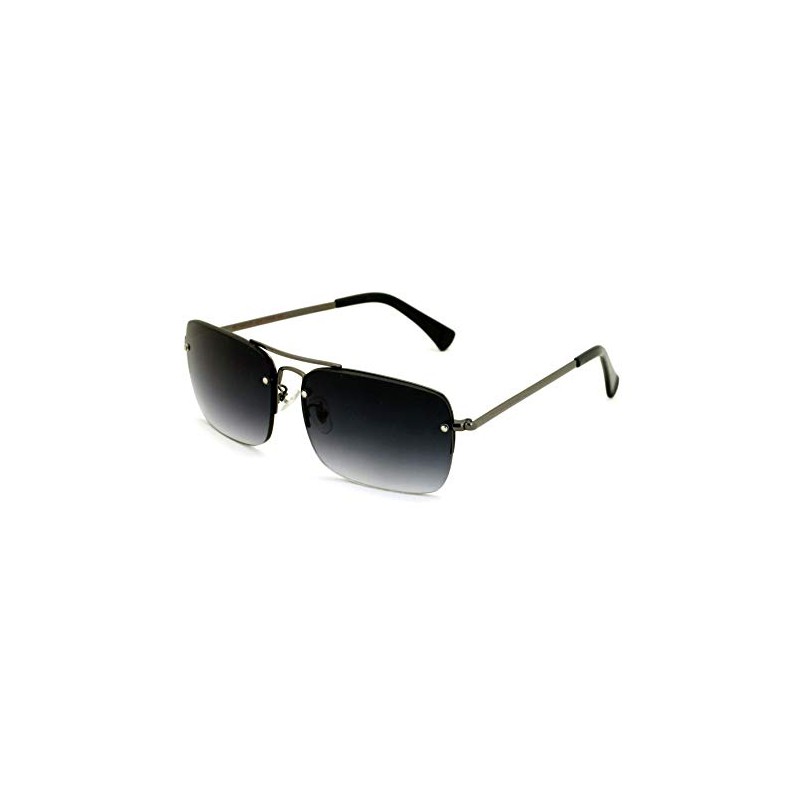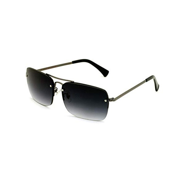 Men Large Outdoor Sunglasses Metal Rimless Aviator Reading Glasses - Big Lens Rectangular Sun-Reader (Gunmetal-Black, 2.00)