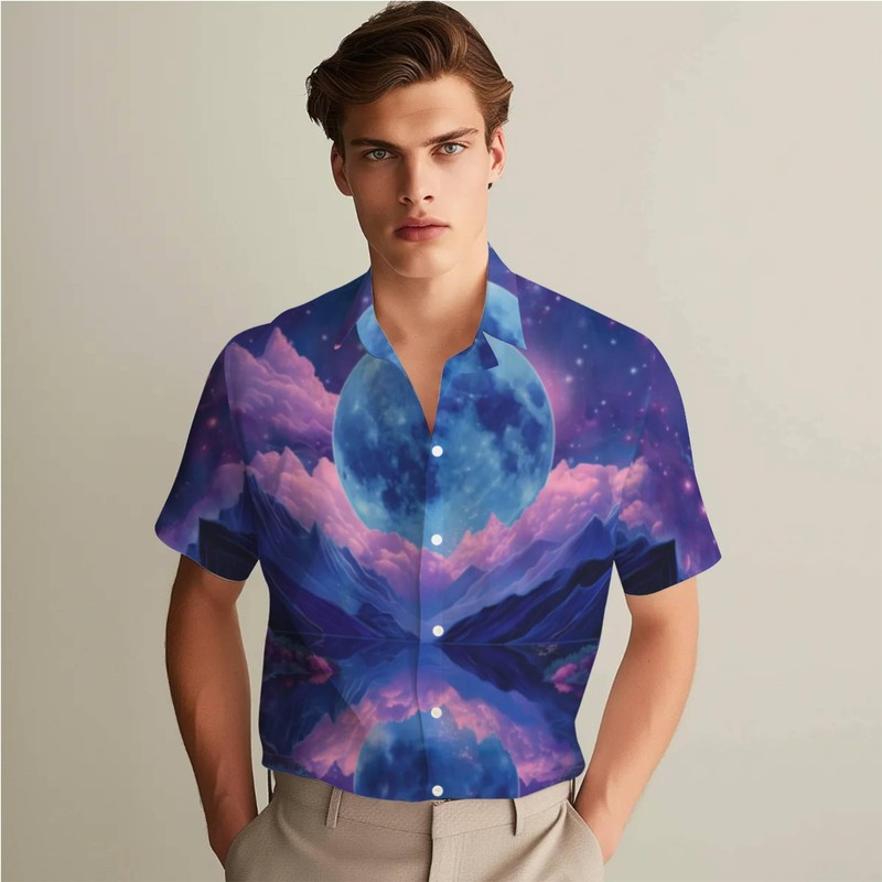 Men's 3D Pattern Print Shirt with Moon Design Stylish Graphic Tee Comfortable Casual Wear Unique Moon Print Top Fashionable Shirt for Everyday Use Size XL