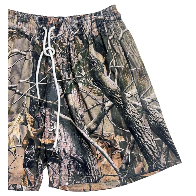 Men's 5 Inches Inseam Camo Real Tree Print Mesh Lined Athletic Basketball & Beach Shorts (US, Alpha, Medium, Regular, Regular, Brown)