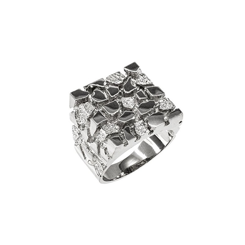 Men's 925 Sterling Silver Four Corner Square Top Nugget Ring (Size 14.75)