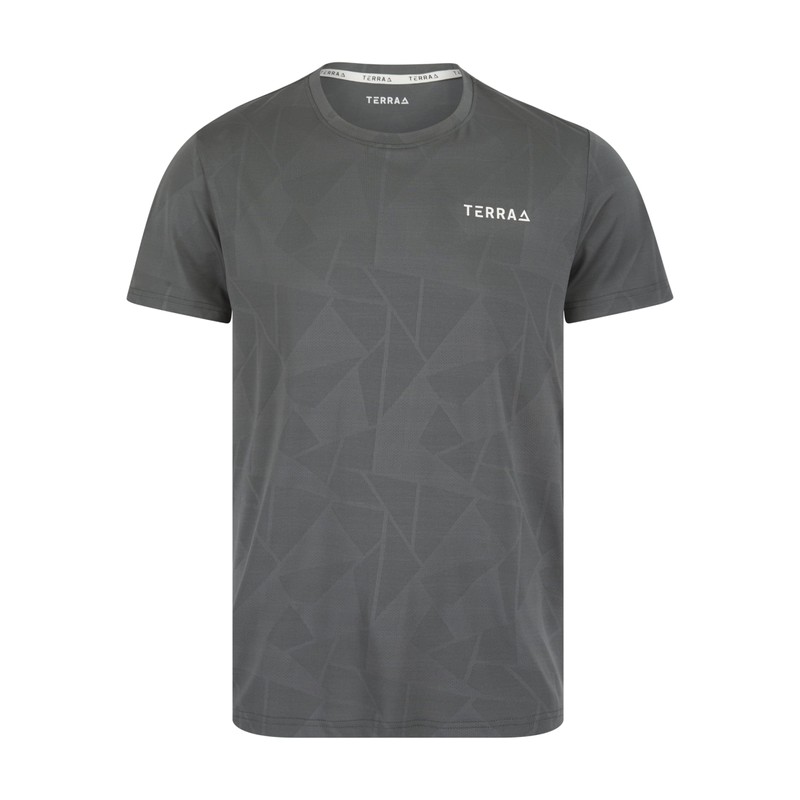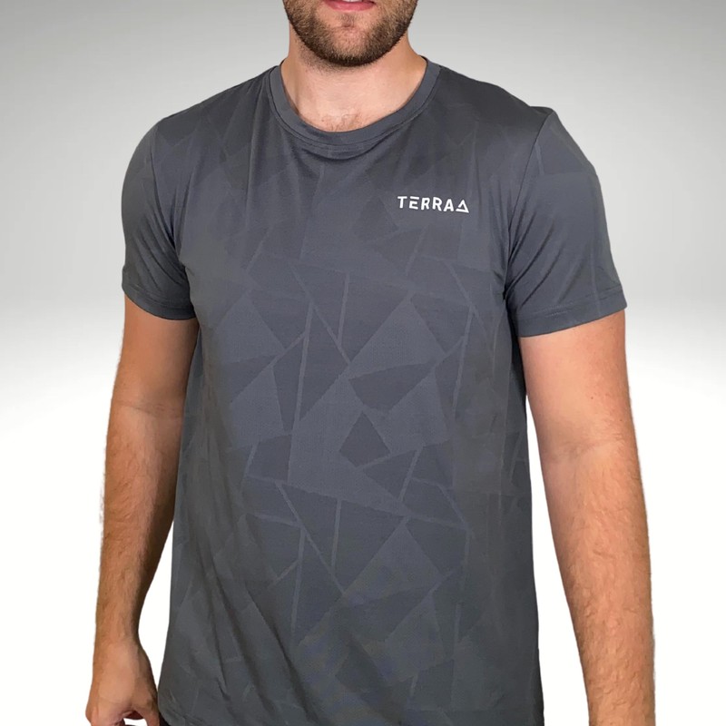 Men’s Activewear Workout T-Shirt - Premium Polyester & Spandex Blend with Geometric Pattern for Gym, Running, Athletics, and Everyday (UK, Alpha, M, Regular, Regular, Grey)