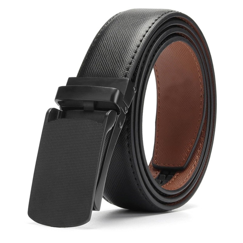 Men's Belt Automatic Sliding Buckle Belts Leather Sliding Ratchet Belt Adjustable Sliding Buckle Belt Fit Used with Casual or Business Suits