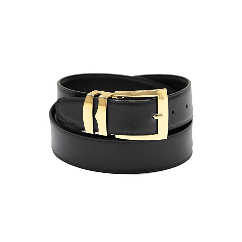 Men's Belt Reversible Wide Bonded Leather Gold-Tone Buckle BLACK/Navy Blue 34