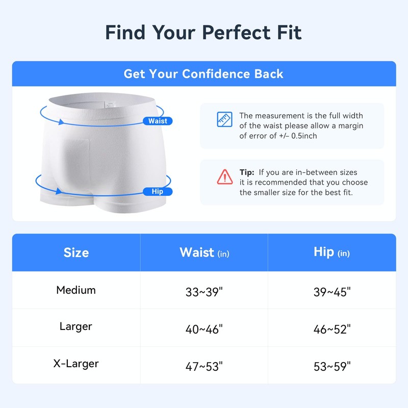 • Eco-Friendly $ Easy Wash - Reusable incontinence underwear are more economical and environmentally friendly than disposables products. Men's incontinence underwear for can be washed like ordinary underwear. It is recommended to wash by hand or in gentle cold water.
