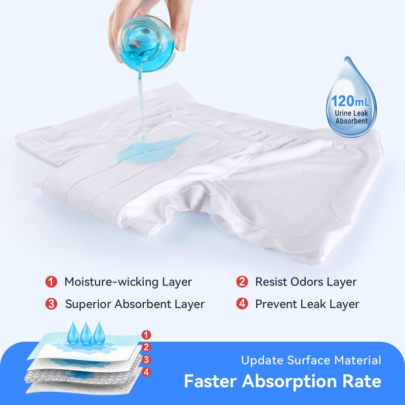 Men's Bladder Leak Protection Underwear 120ML Absorbent, 2 Pack Incontinence ...