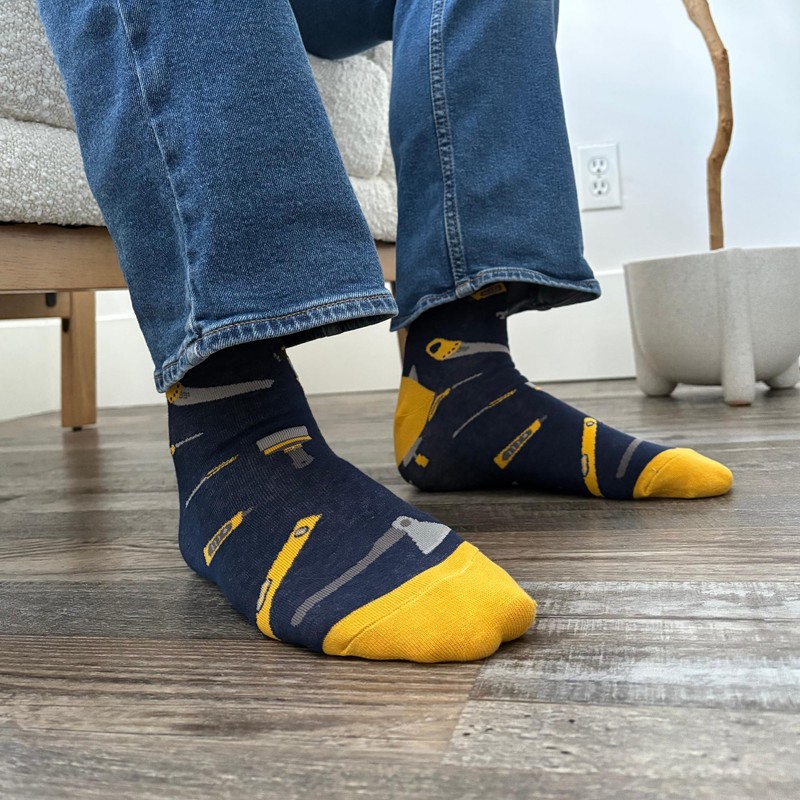 Men's Blue Construction Tool Novelty Socks – Sock Bro Collection - Screwdrivers, Saws, Wrenches