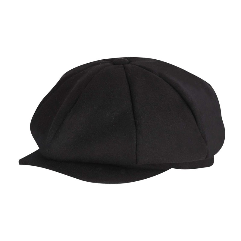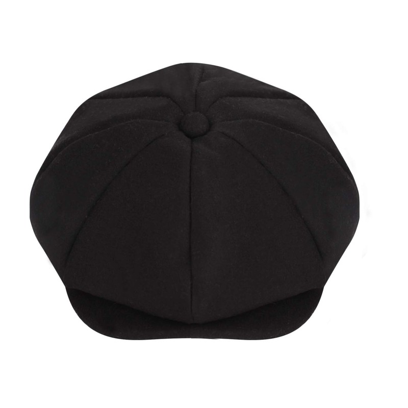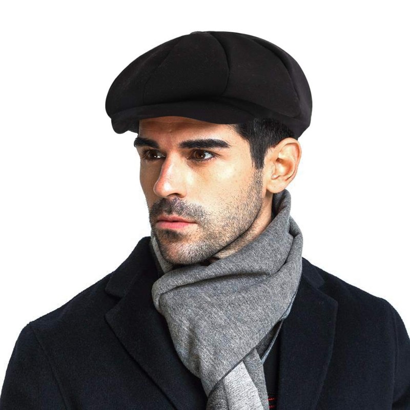 Men's Classic Leisure Newsboy Cap 8 Panel Herringbone Baker Boy Flat Caps Winter Windproof Button Top Hat Tweed Cloth Beret Hat Black