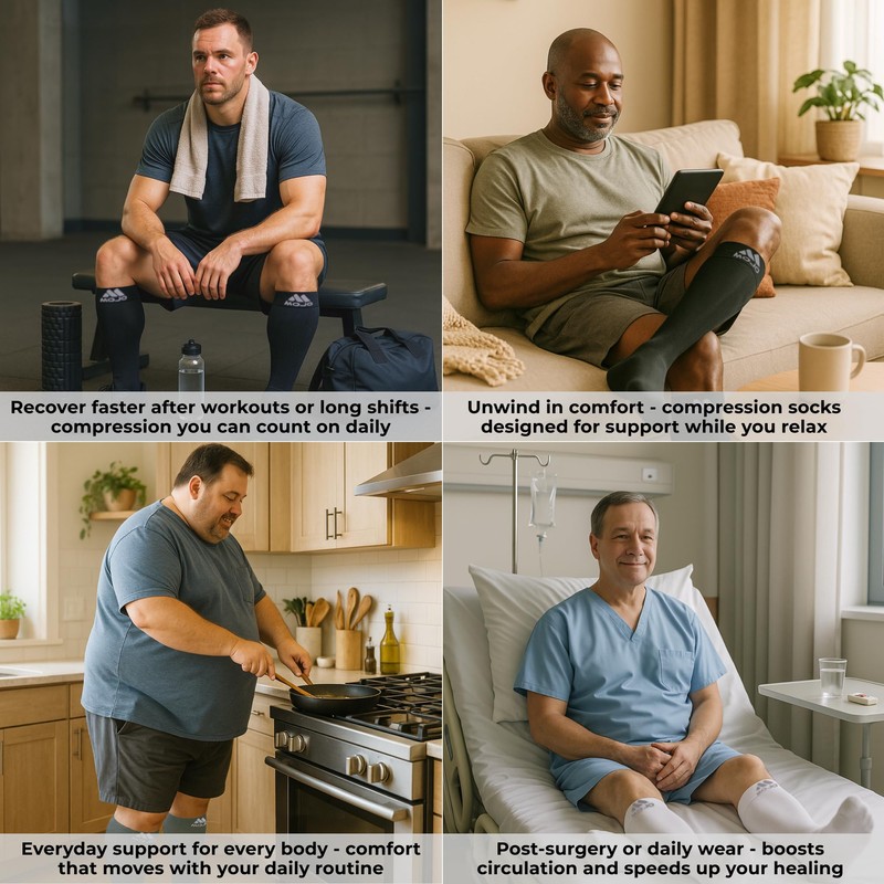 - Ideal for Travel, Work, or Recovery – Great for flying, long car rides, hospital stays, or daily wear. Supports leg comfort for those with varicose veins, poor circulation, or diabetes-related swelling.