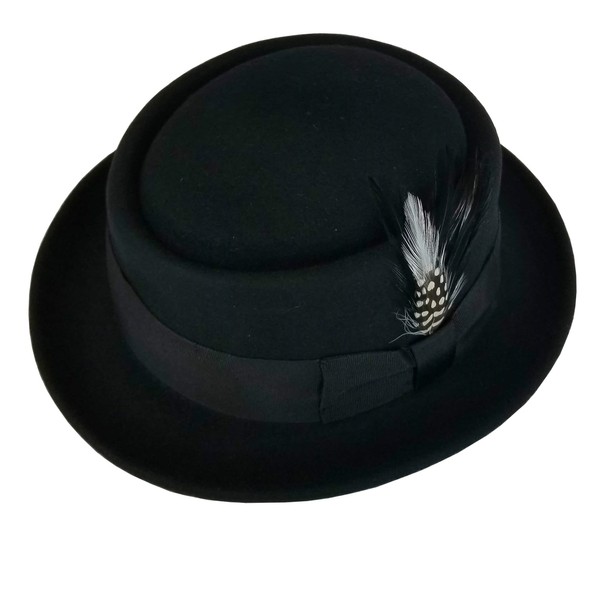 Men's Crush-able Wool Felt Pork Pie Porkpie Fedora Hats Black DTHE09 (S/M)