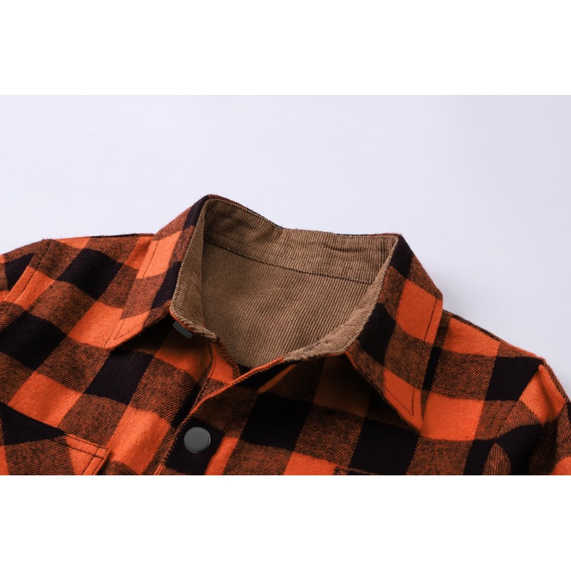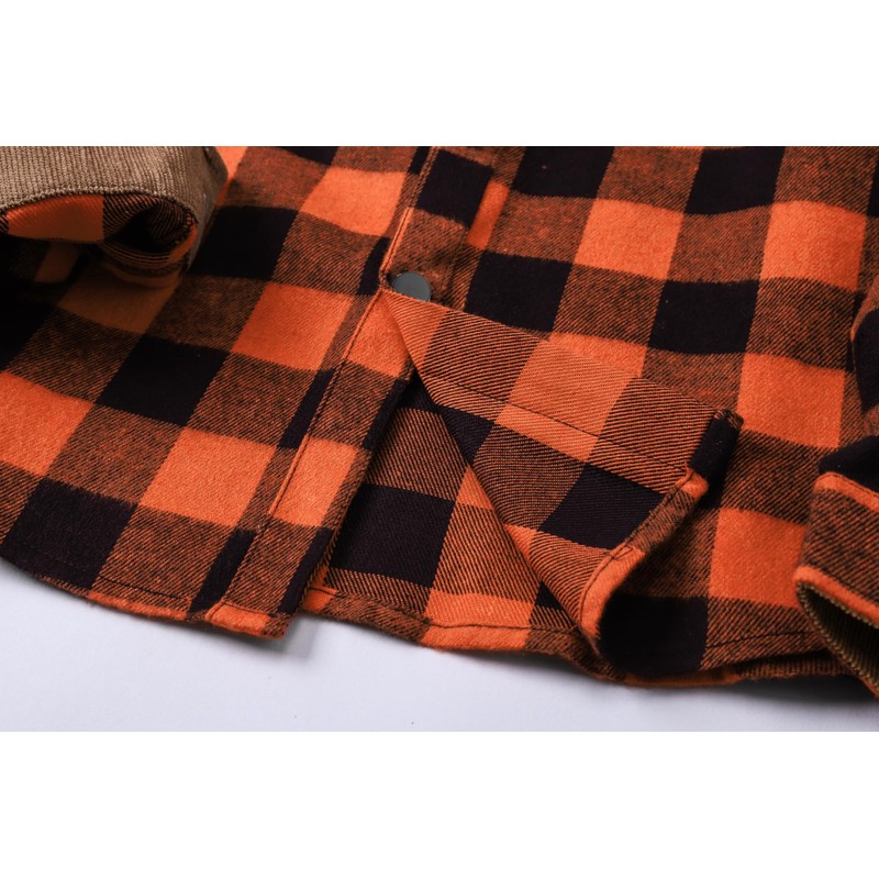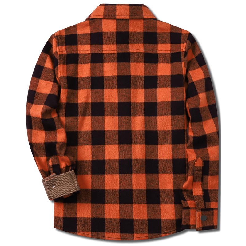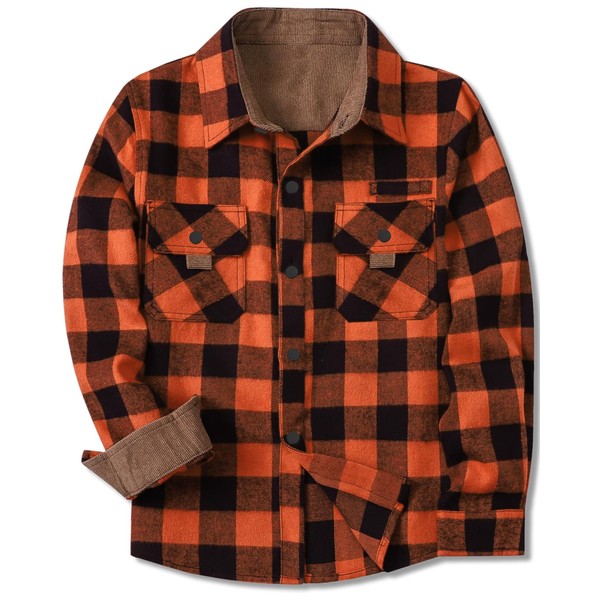 Men's Flannel Shirts Long Sleeve Button Down Plaid Shirts with Corduroy Collar Orange Plaid, 2XL