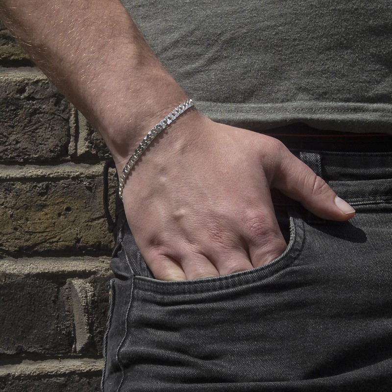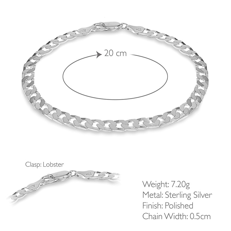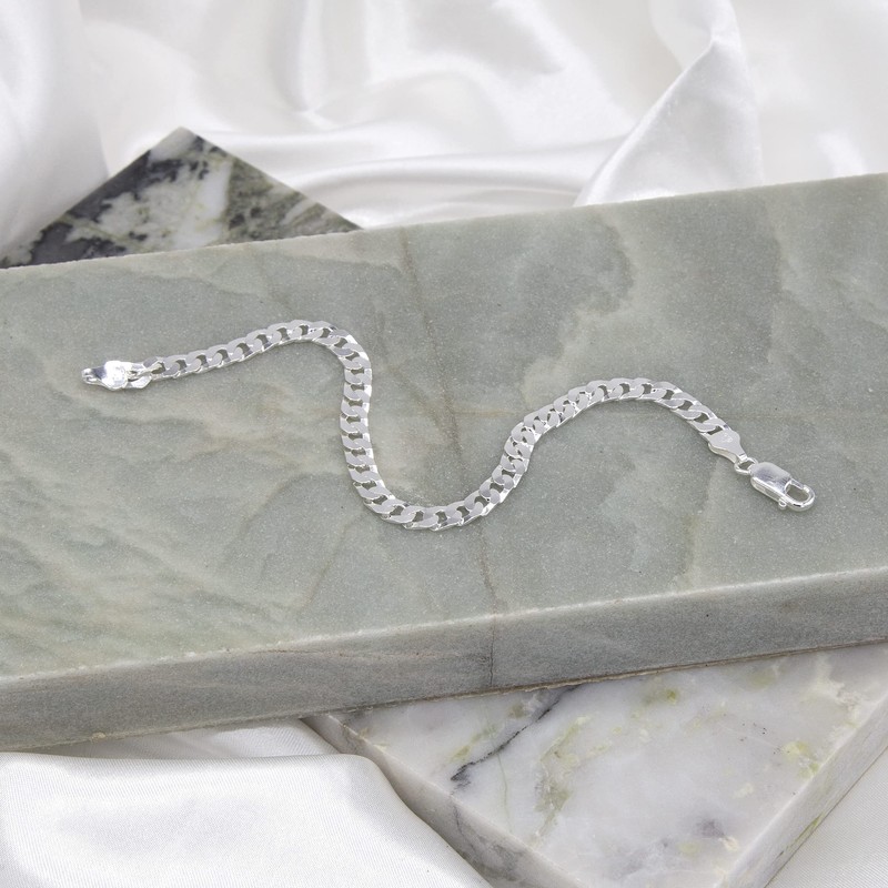 Men's Flat Curb Chain Necklace/Bracelet Chain Link Flat Square Sterling Silver 5mm | Tuscany Silver, Silver